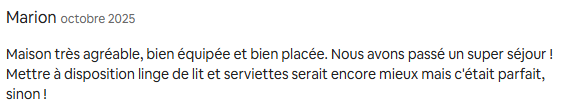 Retrouvez ici les différents avis collectés sur les plateformes de réservation de notre maison.